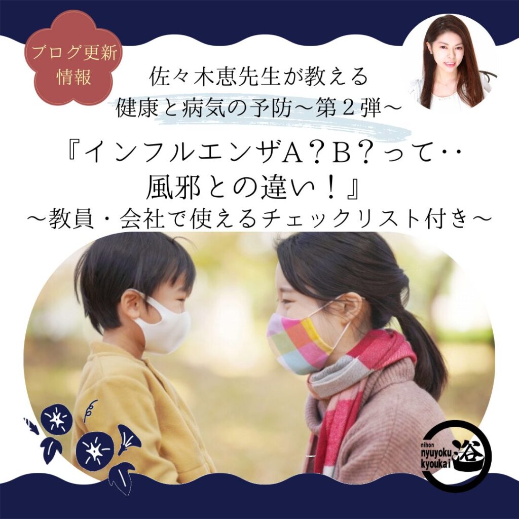 2025/12/02 / 最終更新日時 : 2025/12/02 日本入浴協会 入浴コラム 【コラム】健康と病気の予防特集! 第2弾 日本入浴協会顧問であり保健師、看護師の佐々木恵先生のブログが更新されました。 テーマは、『 健康と病気の予防 特集!』 第2弾は、 『インフルエンザA?B?って‥風邪との違い❣️』 ~教員・会社で使えるチェックリスト付き~ (引用)実はインフルエンザはコロナより死亡数が多く、重症化を予防する事がキーになります。 ぜひ記事内のチェックリストを活用いただき、対策についてもご覧ください✨ 記事はこちらから
